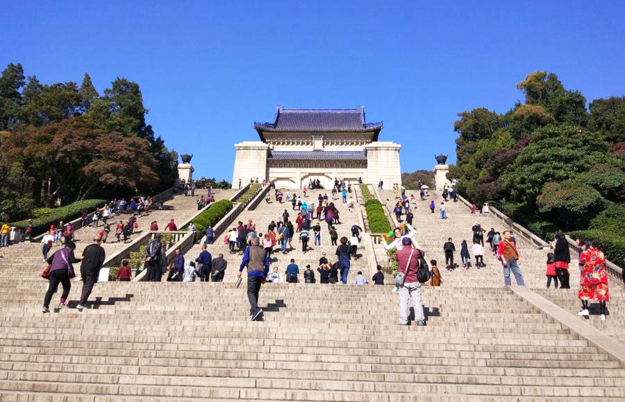 中山陵位于江蘇省南京市玄武區(qū)紫金山南麓鐘山風(fēng)景區(qū)內(nèi),整個(gè)建筑群依山勢(shì)而建,由南往北沿中軸線逐漸升高,主要建筑有博愛坊、墓道、陵門、石階、碑亭、祭堂和墓室等,排列在一條中軸線上,融匯中國(guó)古代與西方建筑之精華,莊嚴(yán)簡(jiǎn)樸,別創(chuàng)新格。