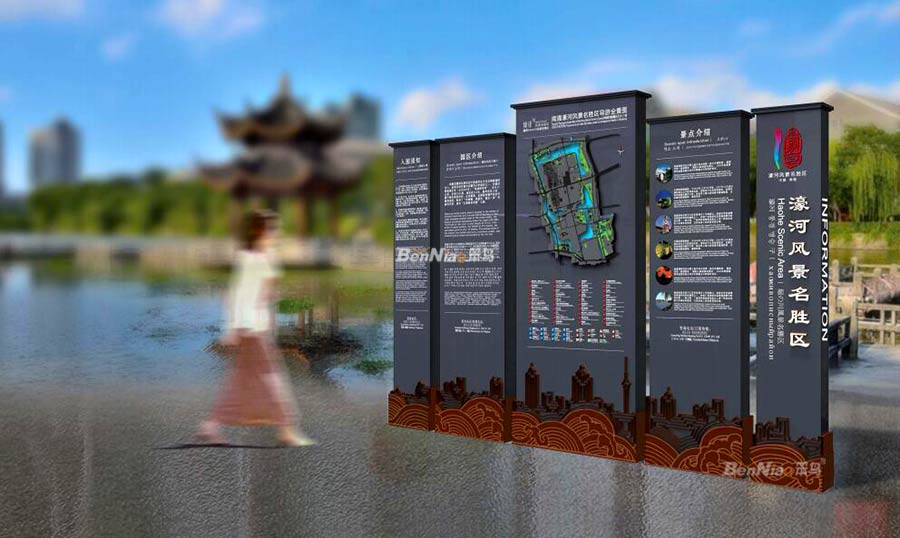 一組清晰有特色的標(biāo)識牌設(shè)計(jì),能夠給景區(qū)增色不少,更能夠幫助游客清楚的找到指引方向,下面欣賞一組南通濠河風(fēng)景名勝區(qū)標(biāo)識牌設(shè)計(jì)制作。