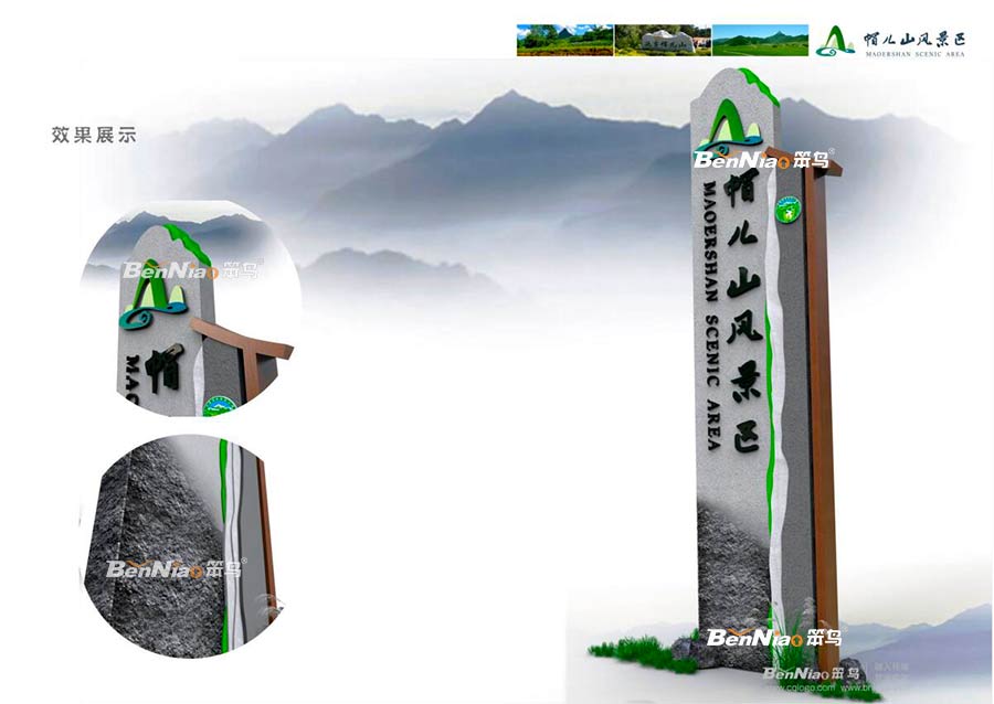 風(fēng)景名勝景區(qū)標識標牌的設(shè)計制作要在材料、樣式、顏色、規(guī)格等方面做到統(tǒng)一,不同類型的風(fēng)景名勝標識標牌的設(shè)計制作要定制相應(yīng)的方案,并采用相近的設(shè)計風(fēng)格,這樣才能在不同地區(qū)統(tǒng)一標識標牌。