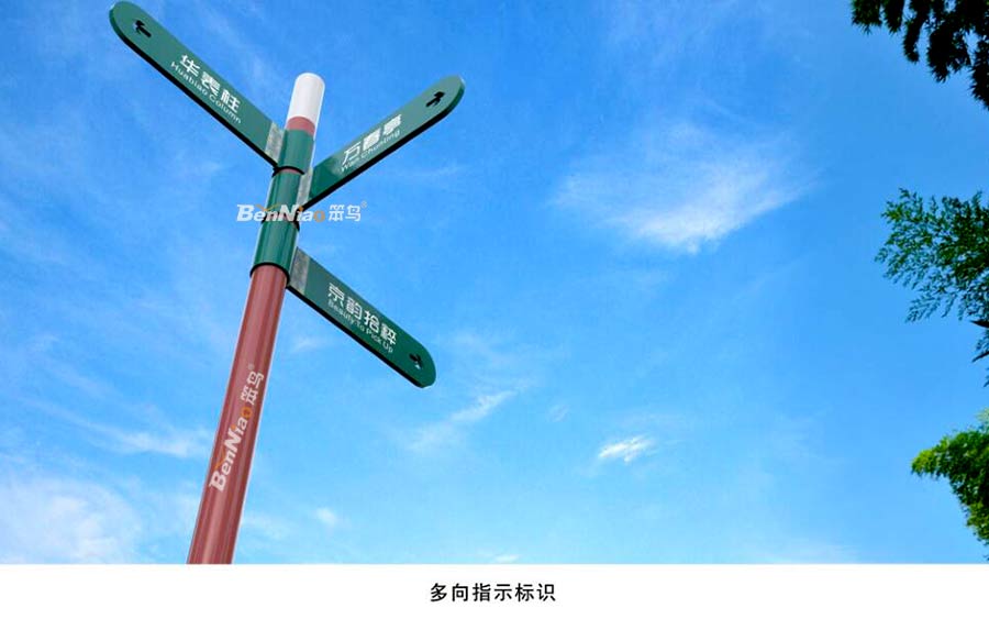 多向指示標(biāo)識也稱之為多向?qū)б暸?、多向?qū)蚺疲侵钢甘痉较虻呐谱樱⑶以谝粔K標(biāo)識牌上可以指示多處方向的指示標(biāo)識,屬于索引標(biāo)識。