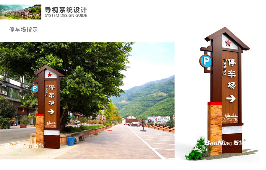 丙安古鎮(zhèn)景點停車場指示牌設計效果圖