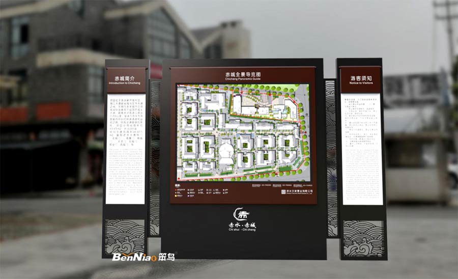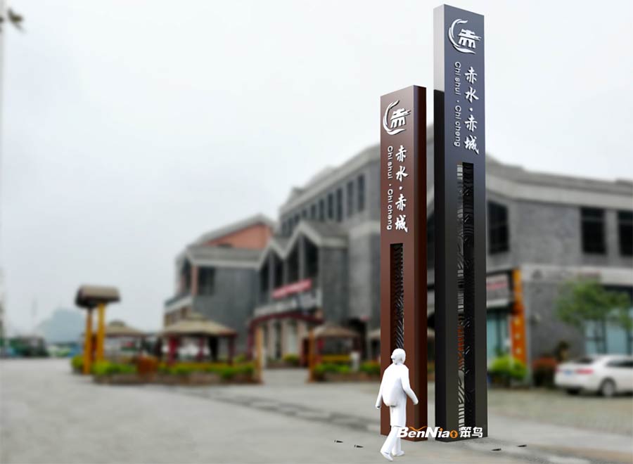 項目位于赤水文華新區(qū),是連接老城區(qū)和景區(qū)接待中心的核心區(qū)域,基地南側為觃劃教育園區(qū),左側觃劃為新城住宅區(qū),史側緊鄰濕地公園,是新城區(qū)的中心地段。項目景區(qū)古跡眾多,有著深厚的文化底蘊。在設計之初笨鳥文旅設計師,多次現場勘察、研究討論過后選取了多個代表景區(qū)的(赤水河、建筑)等的經典形象,最終以不同的形式展現在標牌上,使標識牌不僅具有導示功能,更增加了美學特性、文化標識,打造景區(qū)特色IP。