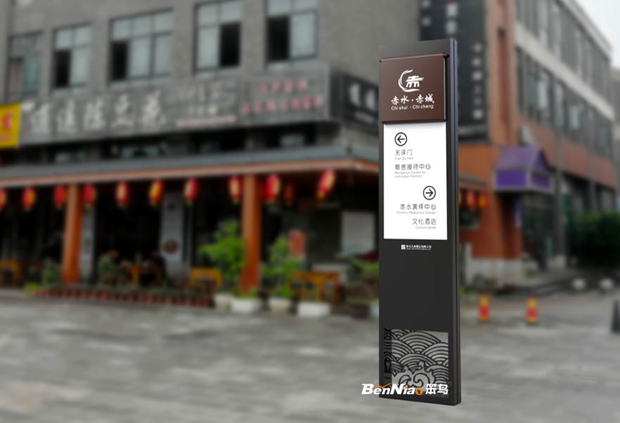 赤水.赤城景區(qū)過去的標識標牌,缺乏完整的標識導視系統(tǒng)規(guī)劃,原有導視、店招風格各異,且與環(huán)境相融度較低。游客常面對指示牌不知方向。全新安裝的指示牌,采用新標樣式,按照國家統(tǒng)一標準進行制定,符號、文字、距離、方向,每一項都清晰明了。
