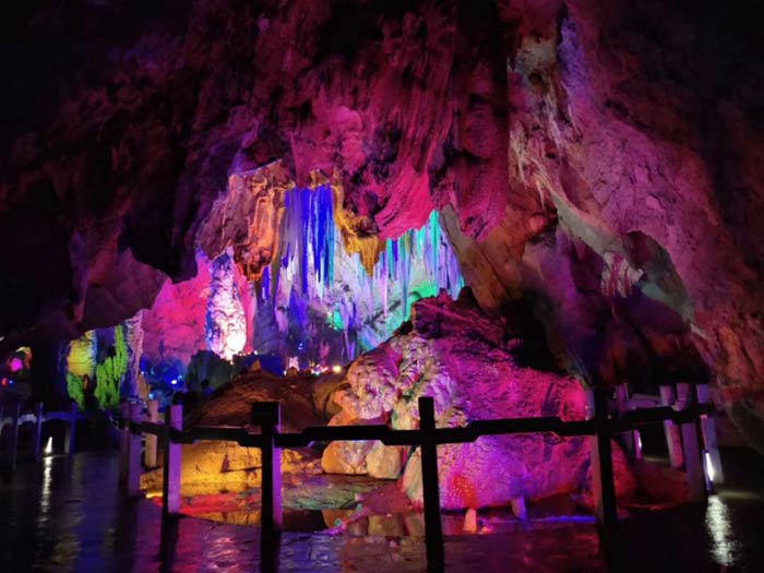 潛龍洞位于松桃苗族自治縣烏羅鎮(zhèn)黔龍村。潛龍洞地處湘、渝、黔兩省一市交界處,位于貴州省梵凈山東麓的松桃自治縣境內(nèi),距梵凈山山腳的冷家壩風(fēng)景區(qū)20公里 。304省道松(桃)印(江)公路穿村而過,潛龍洞位于梵凈山東線山腳,毗鄰桃花源村、廟灣、鳳凰古城、中國苗王城、邊城等知名景點,潛龍洞距松桃縣城60公里、松桃孟溪火車站30公里、大興機場100公里,海拔1300米左右,是典型的高山溶洞。