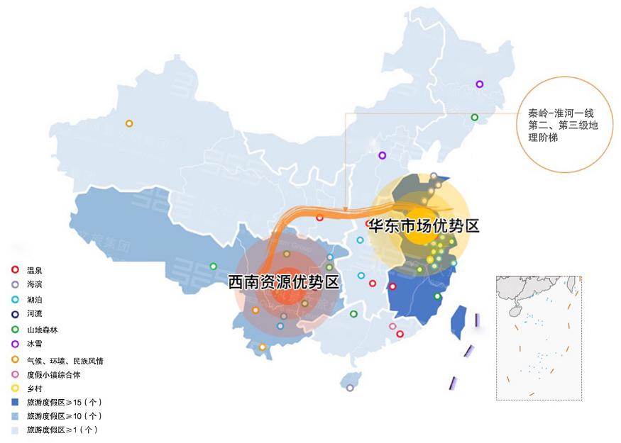 近些年,隨著人們對美好生活的向往日益增長,全國旅游度假發(fā)展如火如荼。其中,華東和西南地區(qū)作為國內(nèi)旅游度假發(fā)展的活躍地區(qū),是全國旅游度假的集聚區(qū)。根據(jù)國家級旅游度假區(qū)區(qū)域分布比例來看,華東和西南占比達到7成,在旅游度假中扮演重要角色。但由于跨區(qū)域地理、人文條件的不同,客群度假需求表現(xiàn)出不同的差異化與特色化。