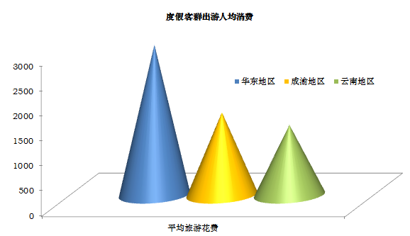 由于社會經(jīng)濟發(fā)展水平和居民家庭收入等因素影響,華東地區(qū)人均旅游消費超3000元,成渝地區(qū)近2000元,云南地區(qū)約1400元。其中70后、80后人群為主力消費人群,90后客群消費力快速增長。