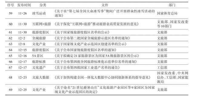 為觀察和研究方便,本文以“文旅融合”“文化旅游”“文旅產(chǎn)業(yè)”等為關(guān)鍵詞,在中國政府網(wǎng)、文化和旅游部官網(wǎng)、北大法寶等網(wǎng)站進(jìn)行檢索,最終篩選出69項(xiàng)政策文本,深入分析我國文旅產(chǎn)業(yè)政策的整體性特征、重點(diǎn)場域以及未來趨勢。