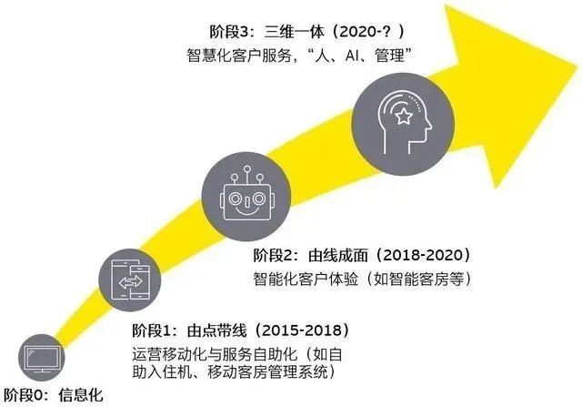 數(shù)字化躍遷也成為了酒店的發(fā)展趨勢之一。從酒店從智能入住、Wi-Fi設備的普及、“智能客房”、“送貨機器人”等。國內酒店集團聯(lián)合知名人工智能、語音識別等技術企業(yè),在預定環(huán)節(jié)的郵件、短信、微信、APP等通知方面,到如今的人工客服智能化,酒店不斷在數(shù)字化轉型的道路上深耕。