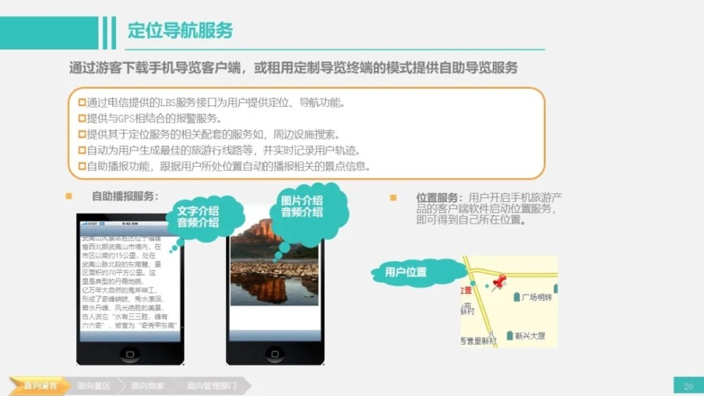 總體來說主要表現(xiàn)在和物聯(lián)網(wǎng)相關(guān)的智能硬件會逐步進入文旅行業(yè)并充分應(yīng)用;AI旅游助手會成為行業(yè)新寵,最近百度和高德對這塊投入比較多;旅游大數(shù)據(jù)會逐步退出市場剛需,取而代之的是私域流量和小數(shù)據(jù)的精準(zhǔn)分析需求越來越得到認(rèn)可;旅游直播產(chǎn)品會成為旅游景區(qū)的標(biāo)配,就像景區(qū)網(wǎng)站和微信公眾號一樣;在信用機制建立和支付技術(shù)發(fā)展下信用游會越來越普遍;最后就是像我們新中安這樣的智慧文旅一體化的解決方案服務(wù)會被景區(qū)接受和更多的選擇。