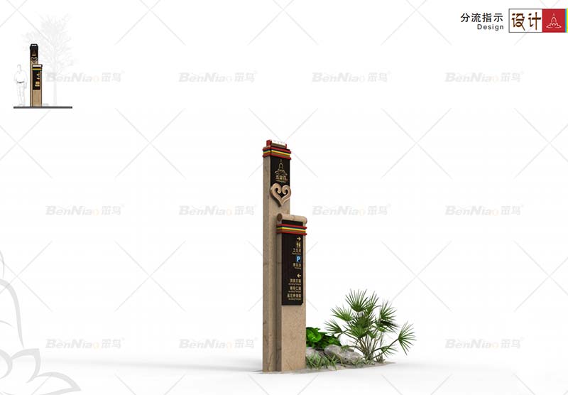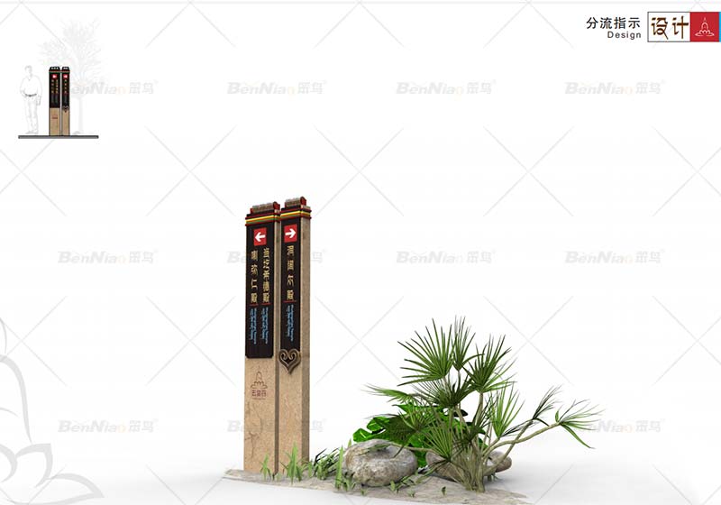 笨鳥為五當(dāng)召景區(qū)設(shè)計(jì)的方向指示牌 (效果圖)