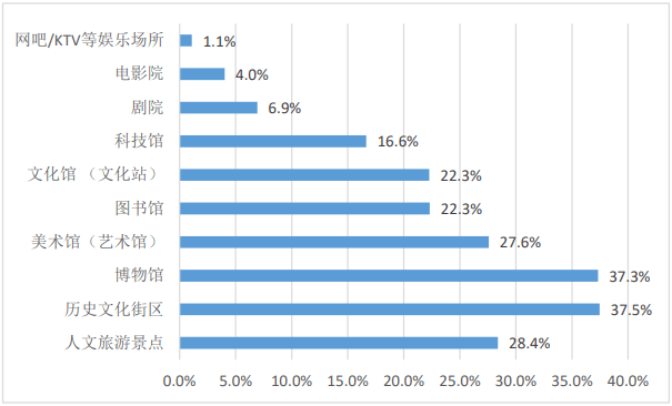 家國(guó)情懷與旅游休閑同振共鳴,游客緬懷革命先烈,感悟紅色文化、厚植家國(guó)情懷,彰顯國(guó)民文化自信。調(diào)查顯示,42.7%的游客參與祭奠和緬懷先烈活動(dòng)。在做好疫情嚴(yán)防嚴(yán)控的前提下,多地策劃推出多種線上、線下文旅活動(dòng),豐富人們的假日文化旅游生活。游客可體驗(yàn)一系列“云”上舞臺(tái)劇、話劇、演藝、國(guó)學(xué)講座、傳統(tǒng)文化課堂、知識(shí)競(jìng)賽、閱讀嘉年華、音樂會(huì)等文化藝術(shù)活動(dòng)。調(diào)查顯示,94.8%的游客參加了文化休閑活動(dòng),參與兩項(xiàng)及以上文化活動(dòng)的人數(shù)占比超過75.6%,歷史文化街區(qū)、博物館、人文旅游景點(diǎn)、美術(shù)館(藝術(shù)館)人氣最高,分別為37.5%、37.3%、28.4%和27.6%,文化體驗(yàn)已經(jīng)成為假日旅游市場(chǎng)剛需,游客文化獲得感提升顯著。
