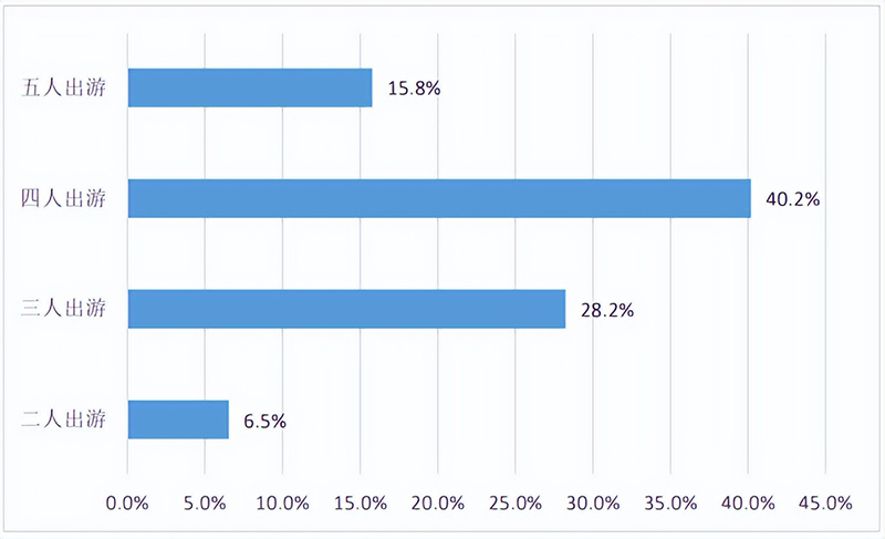 家庭游、親子游在假日市場(chǎng)仍然占據(jù)主導(dǎo)地位。調(diào)查顯示,45.7%的游客與家人(父母孩子等)出游。本次清明假期出游平均同游人數(shù)為3人(不包括受訪者本人),其中,三人出游和四人出游最多,分別為28.2%和40.2%。游客主動(dòng)踐行不扎堆、自覺做好防疫措施,文明出游。