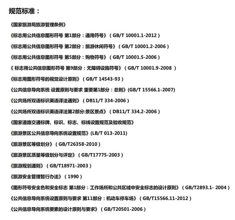 針對(duì)于龍缸5A級(jí)景區(qū),我們將按照《旅游景區(qū)質(zhì)量等級(jí)劃分與評(píng)定》、《旅游景區(qū)公共信息導(dǎo)向系統(tǒng)設(shè)置規(guī)范》等景區(qū)指導(dǎo)標(biāo)準(zhǔn)進(jìn)行規(guī)范設(shè)計(jì),使整個(gè)導(dǎo)視系統(tǒng)在滿足景區(qū)空間氛圍和功能性外,也達(dá)到滿足景區(qū)等級(jí)的規(guī)范要求。