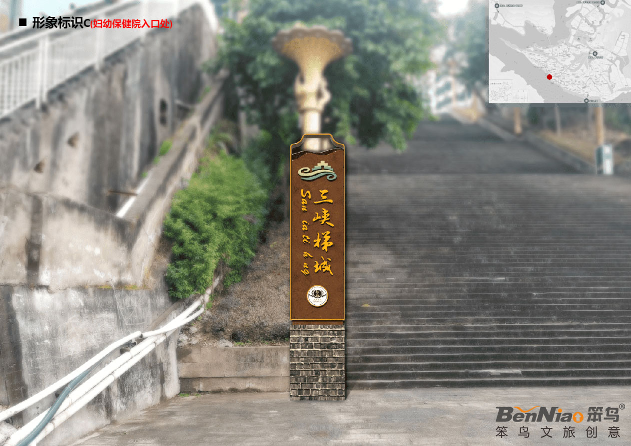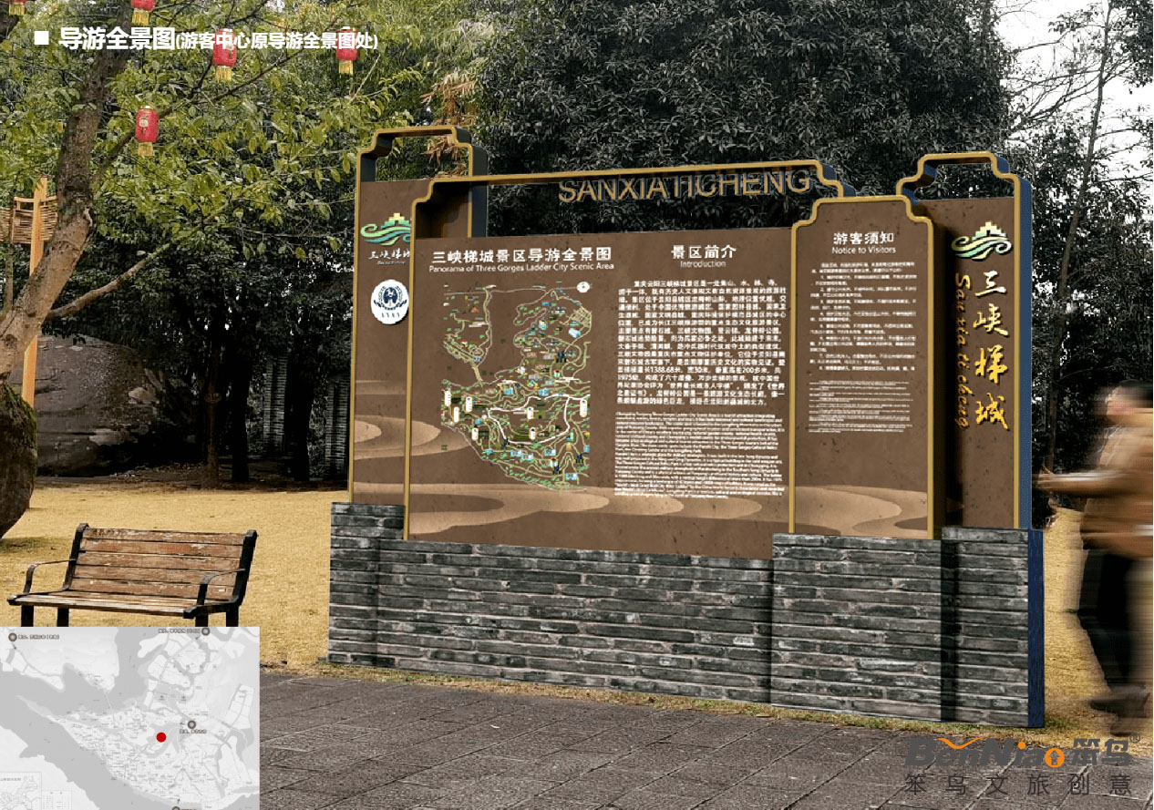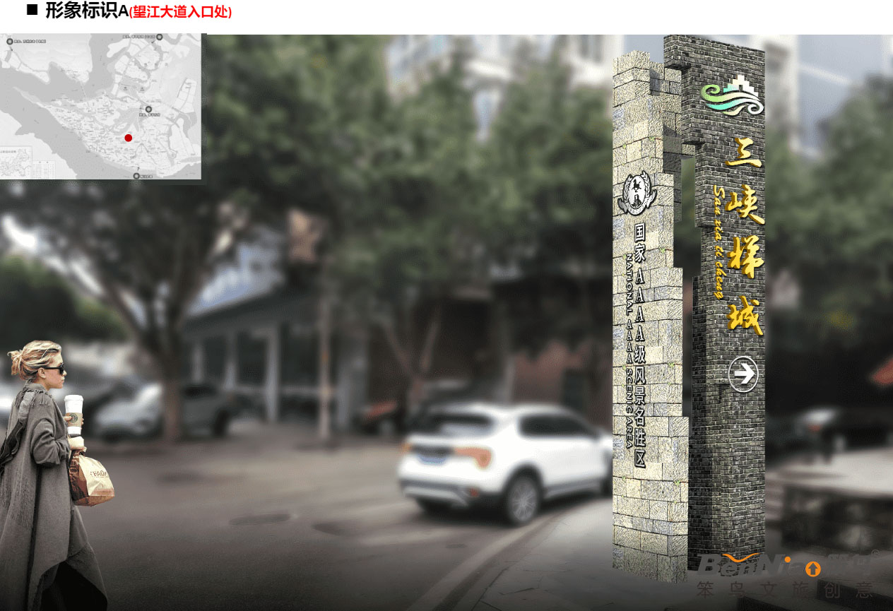 經(jīng)工作人員現(xiàn)場踏勘發(fā)現(xiàn),三峽梯城景區(qū)內(nèi)標(biāo)識系統(tǒng)不完善,入口形象缺失,4A級景區(qū)昭示性缺乏,現(xiàn)有導(dǎo)視畫面磨損嚴(yán)重,信息指示不清晰,且風(fēng)格不統(tǒng)一。