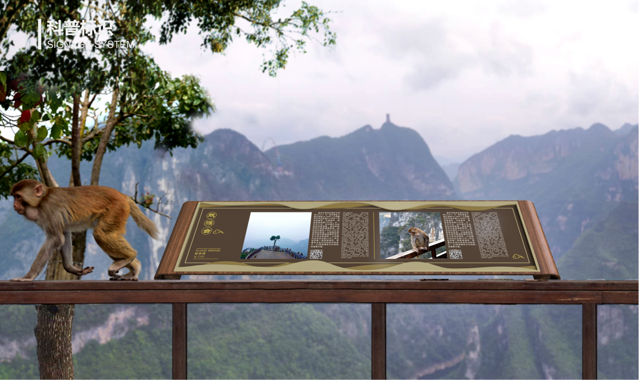 通過標識對空間的“象征性”“指引性”作用,進行信息的傳達,通過信息的識別和感知,強化景區(qū)的網(wǎng)絡化聯(lián)系,從而優(yōu)化景區(qū)空間結構。在選材上根據(jù)本地氣候特征選用基材和表面處理工藝。