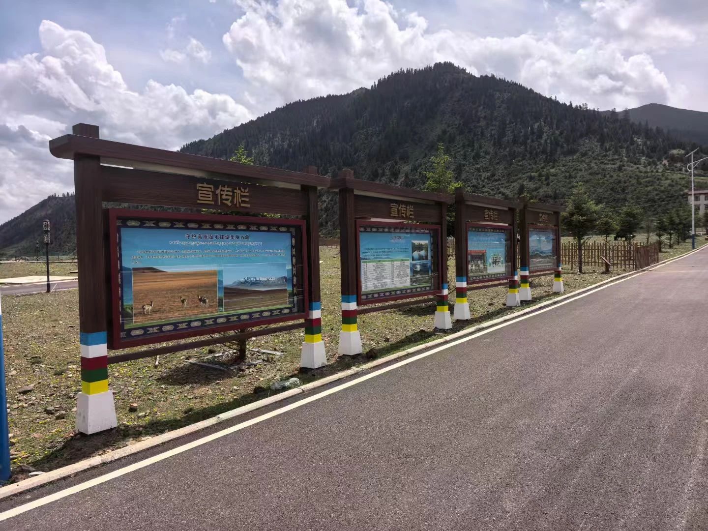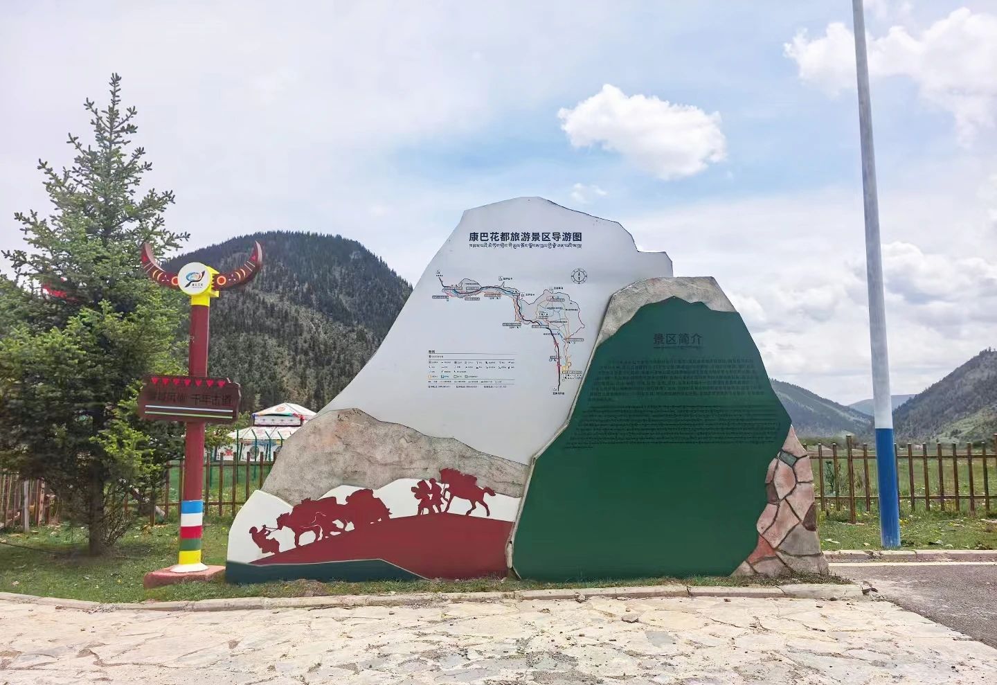 在類烏齊的導視系統(tǒng)設計中,笨鳥文旅團隊以類烏齊藏語為“大山”,取雄奇險峻的伊日峽谷之行形作主體形象以馬鹿、耗牛之形作元素點綴;以形象剪影,科普互動標牌的形式,展現(xiàn)特色的康巴文化、古道文化、生態(tài)文化;采取藏區(qū)鮮明個性的色彩、民俗紋樣,加以建筑獨特的磚石材質,融入整體形象設計。