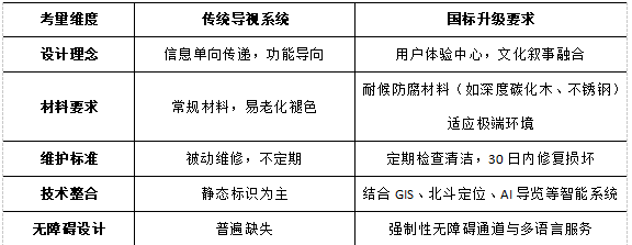 國家標準對導視系統(tǒng)提出了全面要求?!禛B∕T 38654-2020 公共信息導向系統(tǒng)規(guī)劃設計指南》明確標識系統(tǒng)應遵循八大原則:安全性、規(guī)范性、完備性、醒目性、系統(tǒng)性、個性化、環(huán)保節(jié)能、契合環(huán)境?!禛BIT 17775-2024旅游景區(qū)質量等級劃分》細則二:標志標識應數(shù)量充足、布局合理、體現(xiàn)文化特色、制作精致、圖形規(guī)范;信息化管理與服務。