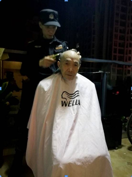 從那以后,秩序維護(hù)員庹軍每隔一段時間都會拿上自己心愛的理發(fā)工具,到小區(qū)3-3-6去為兩位老人理發(fā)。