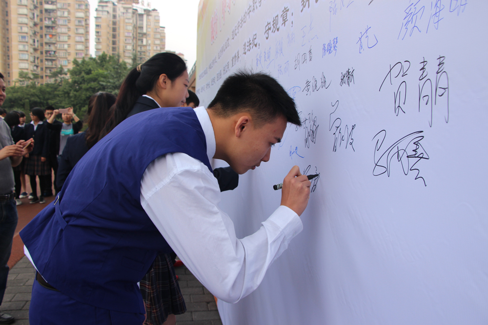 學(xué)生在《公約》承諾書(shū)上簽字