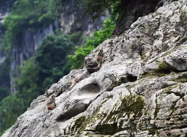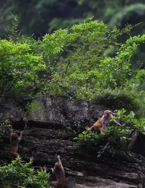 5月26日拍攝的小三峽岸邊的野生獼猴
