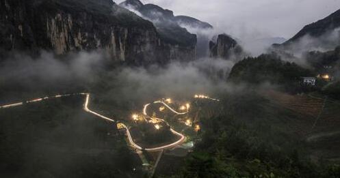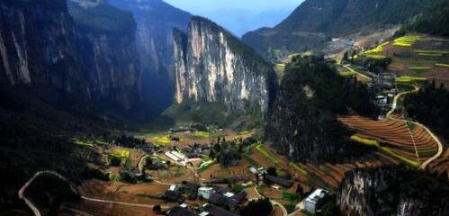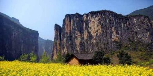 旱夔門距奉節(jié)縣城約40千米,位于奉節(jié)縣興隆鎮(zhèn)回龍村椅子淌腹地,是地殼運動時大自然留下的鬼斧神工之作,其形狀和險峻堪比長江上的夔門。因為山谷里平時干旱,雨天才出現(xiàn)小細流,旱夔門之名由此而來。兩塊巨大的絕壁相對而立,山勢插天,中間留有一道筆直的高而狹窄的山口,猶如一扇石門敞開?!伴T”高約600余米,寬400多米,蔚為壯觀。峭壁上有幾千年的懸棺乃古巴文化的見證。