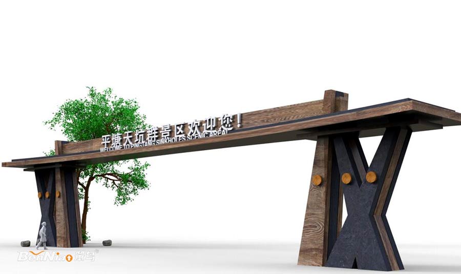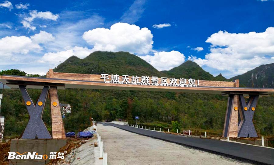 天坑群景區(qū)積極響應(yīng)全域旅游相關(guān)政策,給游客帶來更優(yōu)質(zhì)的服務(wù),景區(qū)從新升級打造,笨鳥有幸參與此次景區(qū)升級打造的大門設(shè)計與制作。我司設(shè)計團隊于2017年8月開始多次對天坑群景區(qū)進行實地勘測、走訪。結(jié)合景區(qū)現(xiàn)場地質(zhì)風(fēng)貌、民族文化、當?shù)靥厣认嘟Y(jié)合,對天坑群景區(qū)大門及標識導(dǎo)視系統(tǒng)進行了初步設(shè)計。分享如下: