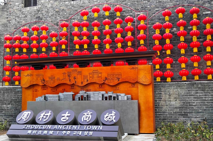 標(biāo)識牌、垃圾桶、雕塑等基礎(chǔ)設(shè)施為古鎮(zhèn)景點(diǎn)增加文化底蘊(yùn)。