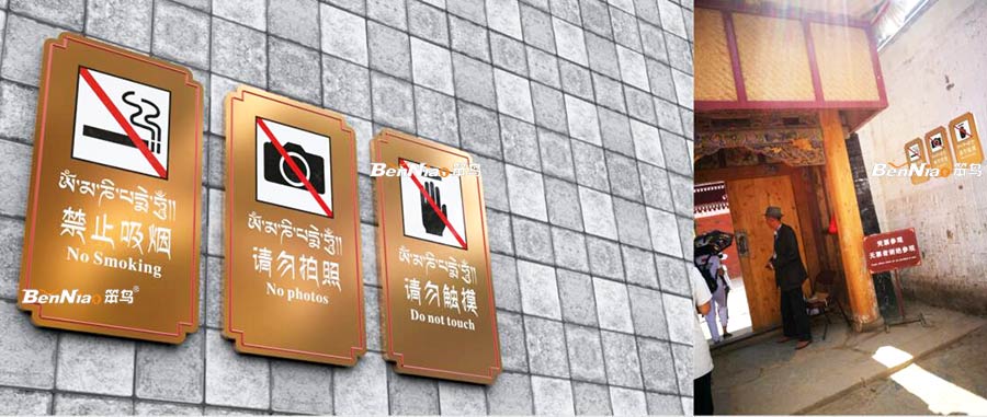 景區(qū)售票處、出入口、游客中心、醫(yī)療點、購物中心、公共衛(wèi)生間和車站等一些公共場所的提示標識牌。