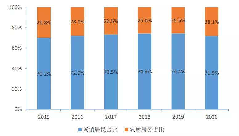 2015-2020年國內(nèi)旅游城鄉(xiāng)客源市場