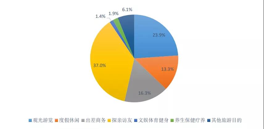 農(nóng)村居民的國內(nèi)旅游目的以探親訪友為主,占37.0%;其次是觀光游覽,占23.9%;再次是商務出差,占16.3%。