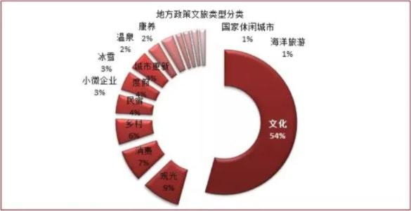 地方政策導(dǎo)向,落實(shí)金融扶持政策,鄉(xiāng)村文旅成地方發(fā)布熱點(diǎn)行業(yè)領(lǐng)域。54%的政策都與文化產(chǎn)業(yè)相關(guān),其次發(fā)展觀光、消費(fèi)以及鄉(xiāng)村類文旅產(chǎn)業(yè)也是地方政策關(guān)注的熱點(diǎn)。