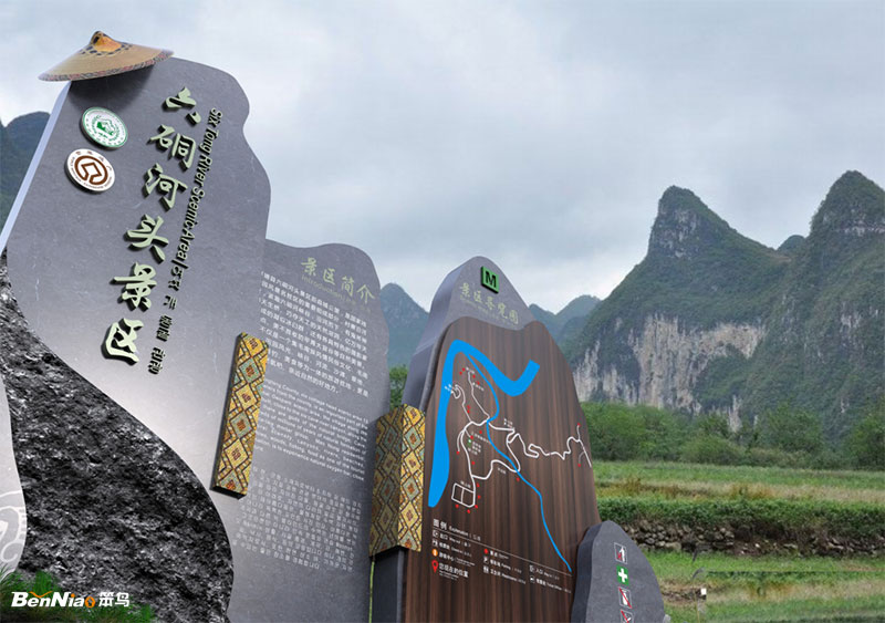 笨鳥文旅為平塘六硐河規(guī)劃設(shè)計的景區(qū)介紹標(biāo)識牌