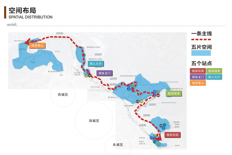 此項(xiàng)目在旅居習(xí)水的總體發(fā)展目標(biāo)框架下,統(tǒng)籌考慮習(xí)水縣城及周邊各區(qū)域的聯(lián)動(dòng)發(fā)展,突出小火車核心引擎的帶動(dòng)作用以及空間輻射結(jié)構(gòu)。串聯(lián)多個(gè)的旅游組團(tuán),聯(lián)動(dòng)新老兩個(gè)城區(qū), 撬動(dòng)旅居習(xí)水建設(shè)。