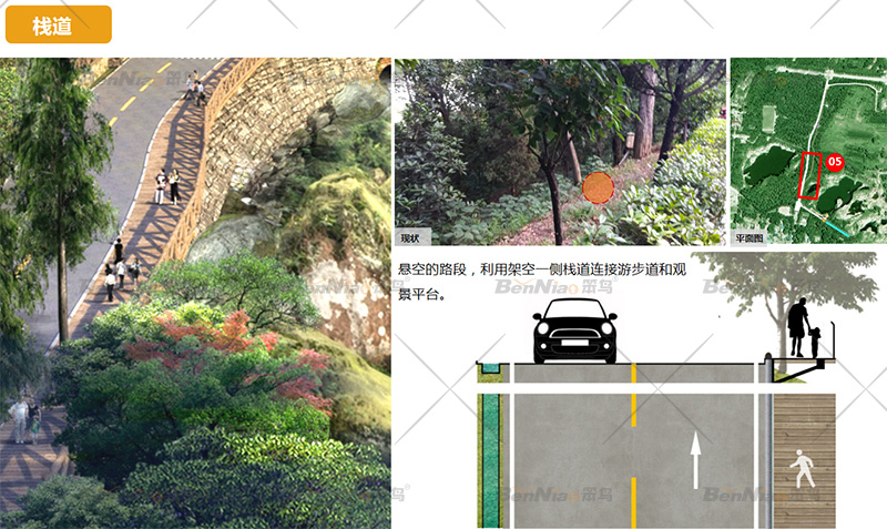根據(jù)地勢恢復(fù)生態(tài)種植,豐富景觀空間的多樣性。后期完善游步道,將景觀節(jié)點(diǎn)連接入整個游憩線路。