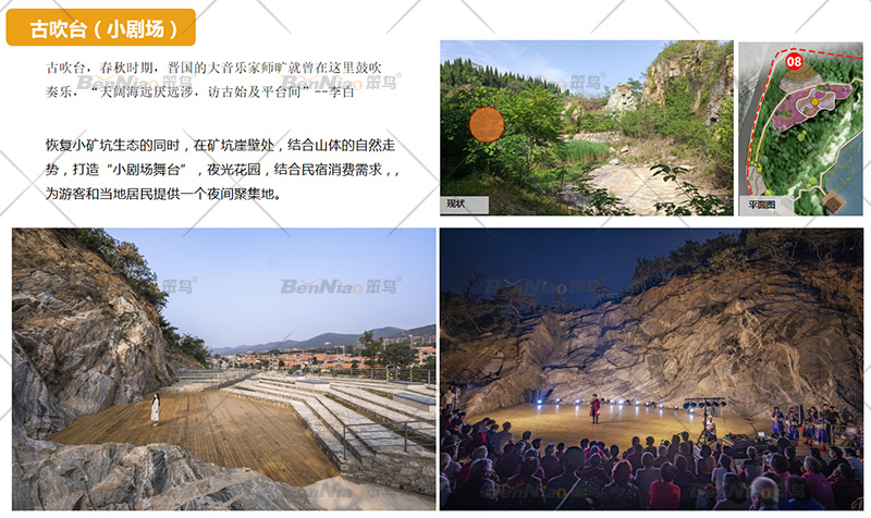 同時在礦坑崖壁處,結(jié)合山體的自然走勢,打造“小劇場舞臺”,夜光花園結(jié)合民宿消費(fèi)需求,為游客和當(dāng)?shù)鼐用裉峁┮粋€夜間聚集地。