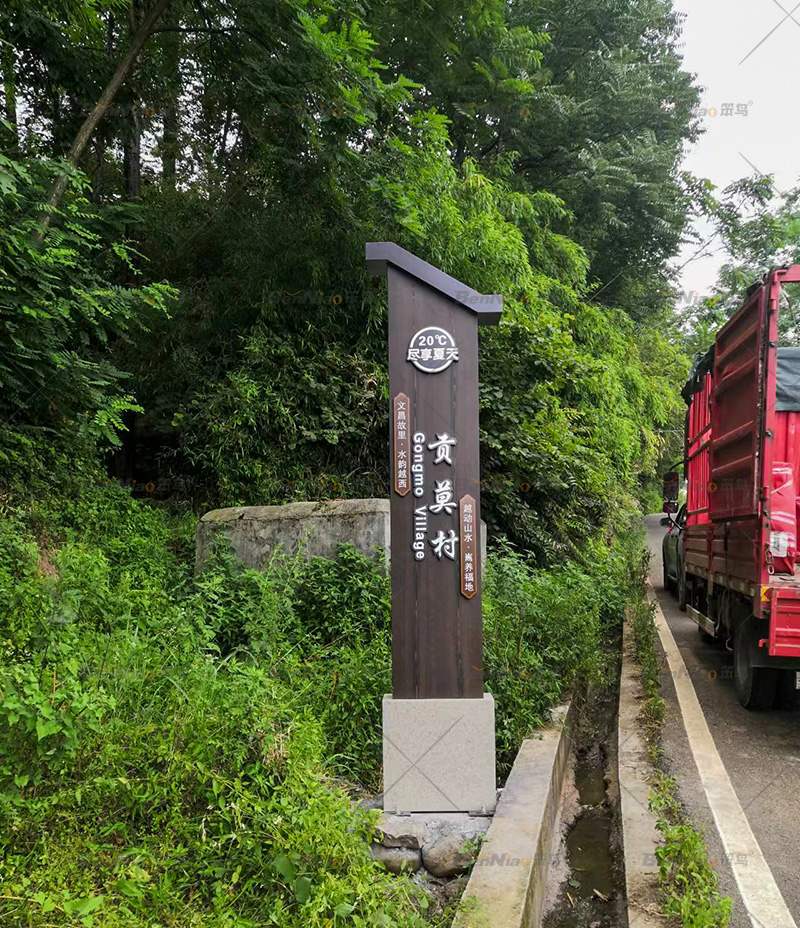 在一個美麗的村莊入口處設(shè)立標(biāo)識牌,不僅是一個村莊的畫龍點睛,也是最具特色的村莊標(biāo)志。