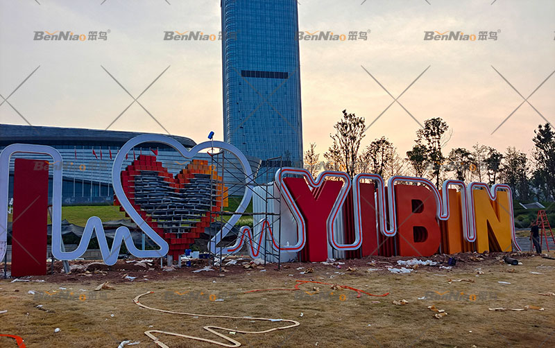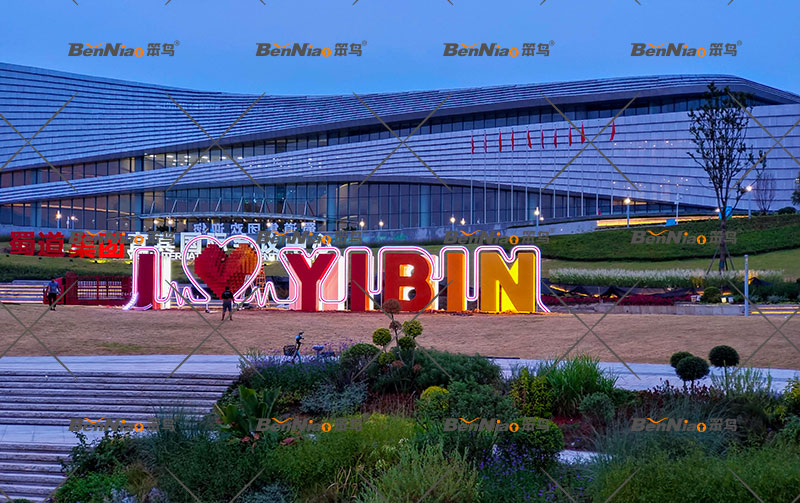 宜賓國際會議中心正式落地,在夜晚當LED照明燈光亮起變換多種顏色,讓原本普通的字煥然一新,帶來不一樣的驚艷改觀。該藝術裝置以充滿生命張力的色彩和獨具一格的表現(xiàn)形式吸引更多游客,除了為游客帶來全新的藝術感觀以外,還對遠道而來的朋友表示歡迎。