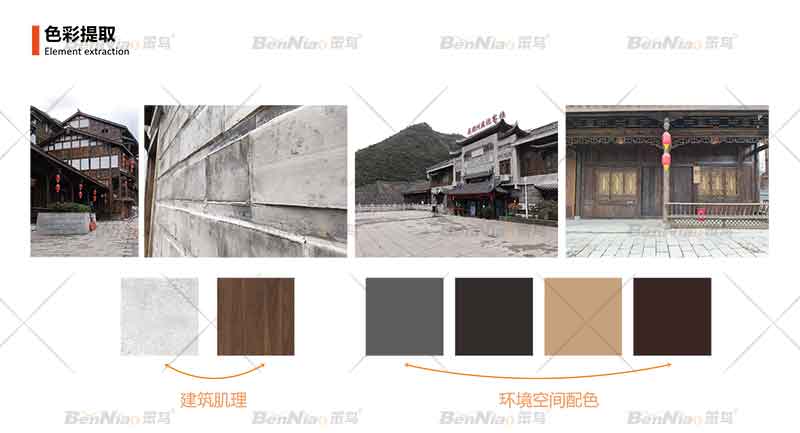 導(dǎo)視系統(tǒng),作為一種文化或文化的一部分,它不但有著引導(dǎo)、說明、指示等功能,它也是環(huán)境布局的重要環(huán)節(jié),也是營造風(fēng)格、塑造文化的重要組成部分。小鎮(zhèn)的導(dǎo)視系統(tǒng)的色彩設(shè)計永遠(yuǎn)不能離開本土文化這個背景,笨鳥文旅的設(shè)計師保持和突出文化色彩,同時具備與自然相協(xié)調(diào)性、易識別性、功能性、適應(yīng)性。通過色彩的設(shè)計加強(qiáng)其識別效果。