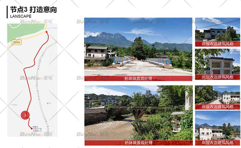 節(jié)點三、對現(xiàn)有交通橋進行改造,以疊川麥芽威士忌酒廠建筑風貌為藍本,石墻、格柵,結合峨眉酒谷品牌logo重點呈現(xiàn)。