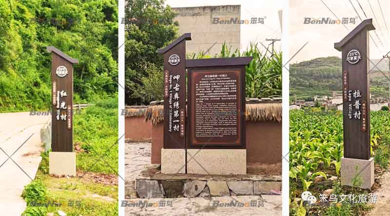 標(biāo)識設(shè)計方面呢,村牌作為美麗鄉(xiāng)村標(biāo)識牌中最為重要的一環(huán),對整個鄉(xiāng)村都起著非常重要的作用。村牌作為一個村子的門臉,精妙的設(shè)計既能明顯的展示村名,也可以有效的向他人宣傳該村的特色文化與人民的精神面貌,對宣傳美麗鄉(xiāng)村非常重要。導(dǎo)向標(biāo)識也能能夠給予客戶、游客極大的便利,同時也是村落風(fēng)格的展現(xiàn)。