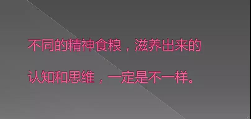 所以呢,我總結(jié)出:不同的精神食糧滋養(yǎng)出來的認知和思維一定是不一樣的。